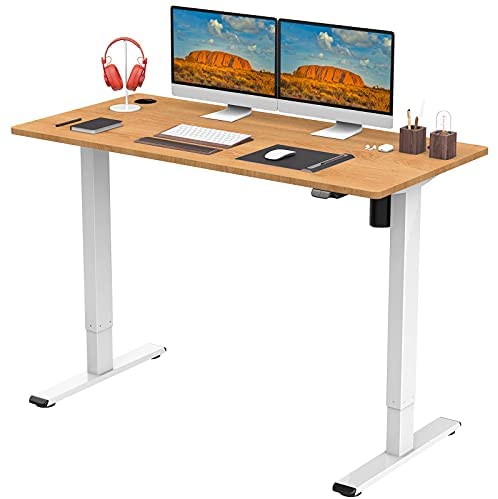 • Flexispot EG1 Electric Standing Desk, Height Adjustable Desk Sit Stand Up Desk with Splice Board Home Office Desks 55 x 28 Inches Vici (White Frame + Maple Top)
