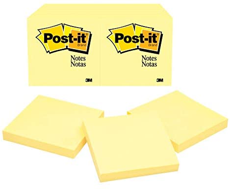 • Post-it Notes 3×3 Inch, 12 Pads, America’s #1 Favorite Sticky Notes, Canary Yellow, Clean Removal, Recyclable (654)