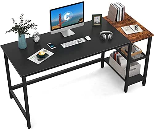 • CubiCubi Computer Home Office Desk, 55 Inch Small Desk Study Writing Table with Storage Shelves, Modern Simple PC Desk with Splice Board, Black/Brown