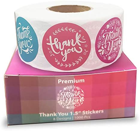 • Thank You Stickers Roll of 1000 1.5 Inch 8 Designs Thank You Sticker Small Business Thank You Stickers Pink Thank You Stickers for Packaging Stickers Thank You Large Thank You Stickers