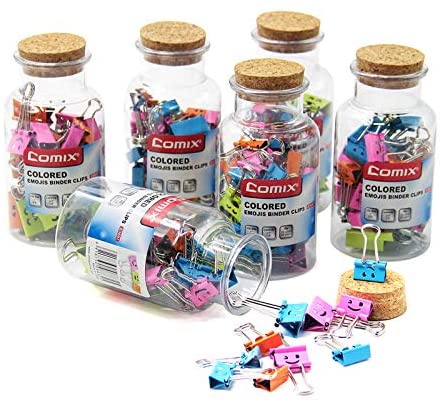 • Comix Binder Clips, Smile Pattern,Paper Clips for Office/School/Home/Store,#4 & #5 Size, 6 Pack, 216pcs, Assorted (B3697)