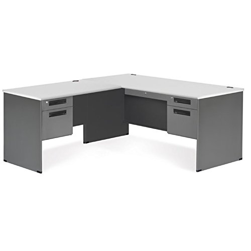 • OFM Executive Series Model 77366-L L-Shaped Desk with Left Pedestal Return and Laminate Top, Gray Nebula
