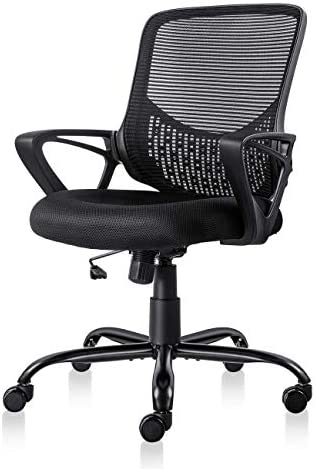 Office Chair Ergonomic Chair Mid Back Mesh Desk Chair Adjustable Height Swivel Mesh Chair Computer Chair with Armrest Lumbar Support (Black)