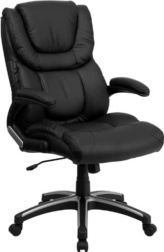 • Flash Furniture High Back Black LeatherSoft Executive Swivel Office Chair with Double Layered Headrest and Open Arms, BIFMA Certified