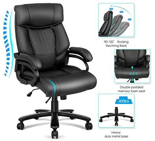 • Kealive High Back Executive Office Chair Big & Tall, 400lbs Leather Computer Desk Chair, Adjustable Tilt Angle Ergonomic Swivel Rolling Chair with Thick Padded Headrest and Armrest