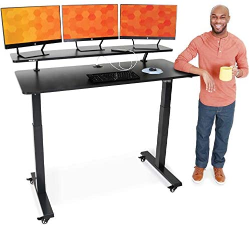 • Stand Steady Tranzendesk Power | 55 Inch Electric Standing Desk with Built-In Charging | Height Adjustable Stand Up Desk with Clamp On Shelf | Electronic Desk with 1 AC Outlet & 2 USB Ports (55/Black)