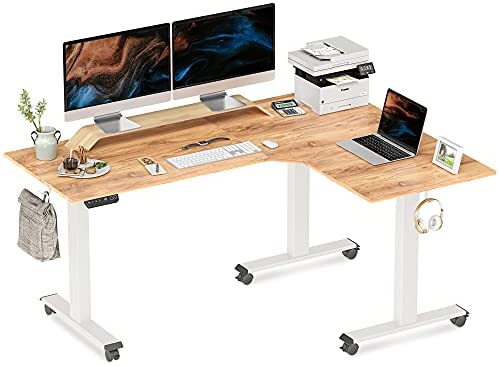 • BANTI Triple Motors L-Shaped Electric Standing Desk, 63 Inches Adjustable Height Stand Up Desk, Sit Stand Home Office Desk with Light Rustic Brown Top/White Frame, (B-SDE-63LLR)