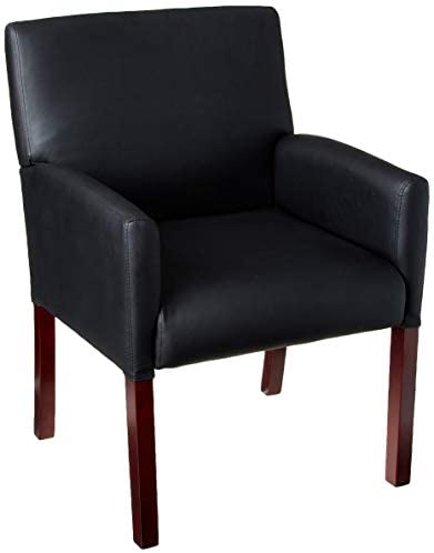 • Boss Office Products Reception Box Arm Chair with Mahogany Finish in Black, 25″ D x 24.5″ W x 35″ H
