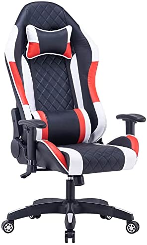 • YOLENY Gaming Chair Computer Game Chair Office Chair Ergonomic High Back PC Desk Chair, Height Adjustment Swivel Rocker with Headrest and Support Lumbar Pillow, Red Black