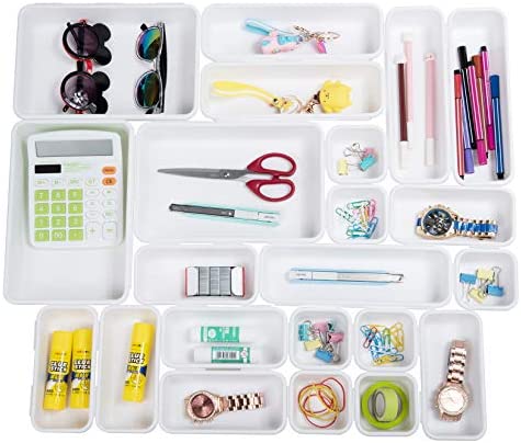 • Backerysupply Set Of 22 Interlocking Desk Drawer Organizer Tray White Drawer Dividers Storage For Office Supplies And Tools