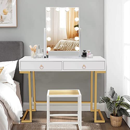 • Makeup Vanity Table with Drawers, 45 Inch Vanity Desk or Writing Desk for Small Spaces, Modern Home Office Computer Desk for Students Bedroom, White