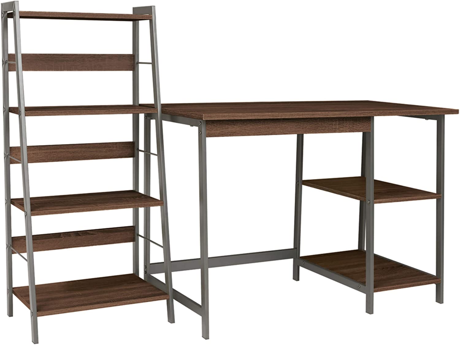 • Signature Design by Ashley Soho Urban Industrial 43" Home Office Desk with 4 Shelf Bookcase, Dark Brown