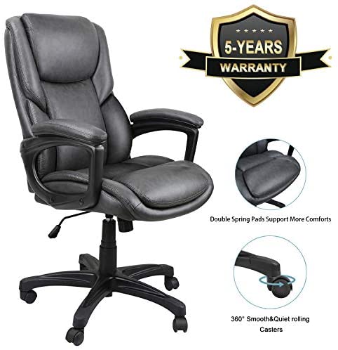 • 0ffice Chair Adjustable Ergonomic Desk Chair with Padded Armrests,Executive PU Leather Swivel Task Chair with Lumbar Support (O-Grey) (2645)