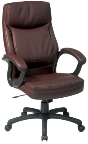 • Office Star High Back Thick Padded Contour Seat and Back Eco Leather Executive Chair with Locking Tilt Control with 2-tone Stitching, Mocha