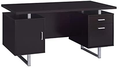 • Coaster Home Furnishings Coaster Glavan Contemporary Cappuccino Office Metal Sled Legs and Floating Desk Top, 60 W x 24 D x 30 H
