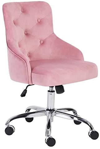 • DMF Furniture Home Office Chair with High Back, Modern Design Tufted Velvet Desk Task Chair with Arms in Study Bedroom (No Nail Chair, Pink)