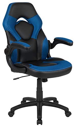 • Flash Furniture X10 Gaming Chair Racing Office Ergonomic Computer PC Adjustable Swivel Chair with Flip-up Arms, Blue/Black LeatherSoft