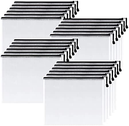• SUNEE Plastic Mesh Zipper Pouch 9×13 in (Black, 24 Packs),Extra Large Water-Resistant Zip Bag for School Office Supplies, Puzzles & Games Organizing Storage