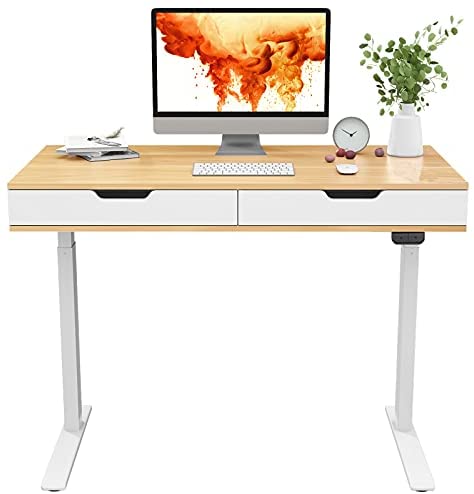 • Flexispot UD4 Electric Standing Desk with Drawers Sit Stand Desk Home Office Desk Mid Century White Oak 2 Button Version