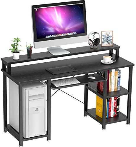 • NOBLEWELL Computer Desk with Monitor Stand Storage Shelves Keyboard Tray,47″ Studying Writing Table for Home Office (Black)