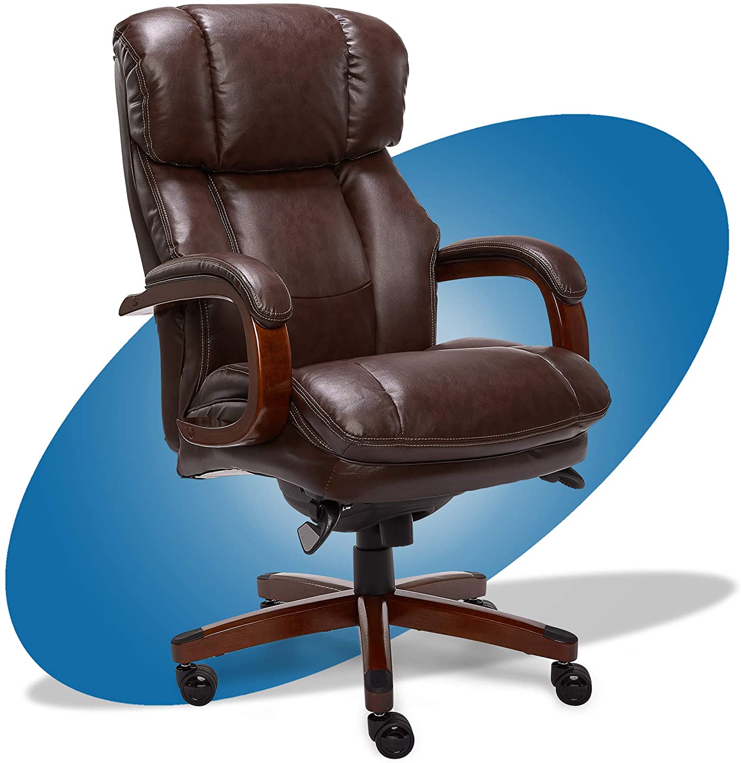 • La-Z-Boy Fairmont Big and Tall Executive Office Chair with Memory Foam Cushions, High-Back with Solid Wood Arms and Base, Bonded Leather, Big & Tall, Biscuit Brown