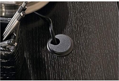 Desk top has grommet holes for electrical cord access