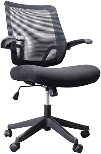 Qwork Ergonomic Office Chair Padded Seat Desk Task Chair with Lumbar Support Flip Up Arms Swivel Rolling Wheels Adjustable Height, Black