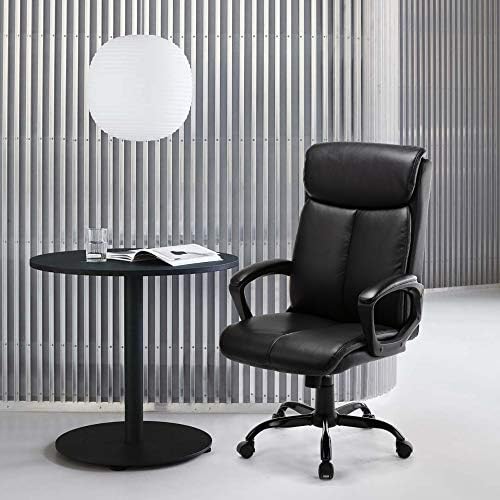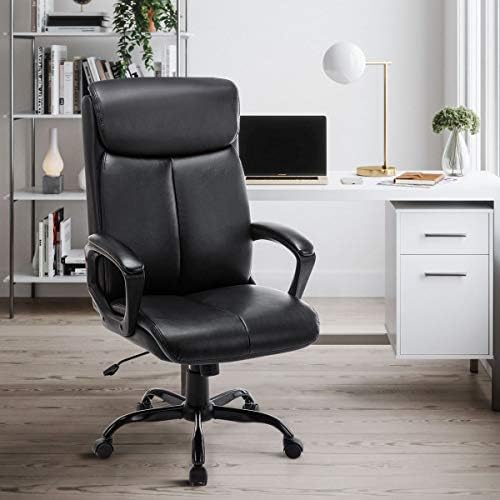 Qwork High Back Office Chair – Executive Bonded Leather Computer Desk Swivel Task Chair W/Rocking Function (Black)