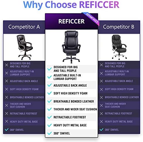 ★ 【LUMBAR SUPPORT AND WATERFALL SEAT EDGE】- The high back design gives you maximum support for comfort and convenience. The chair has soft padding and waterfall seat edge for less pressure on the back of your legs so you can stay comfortable even when you have to sit down for hours. Forget about uncomfortable office chairs that make it impossible to concentrate on your work. The REFICCER executive chair was designed to give you uttermost comfort