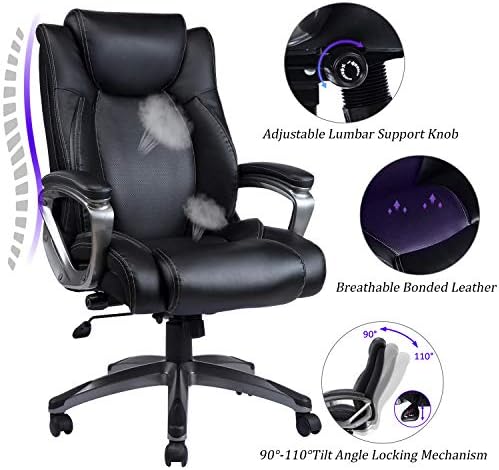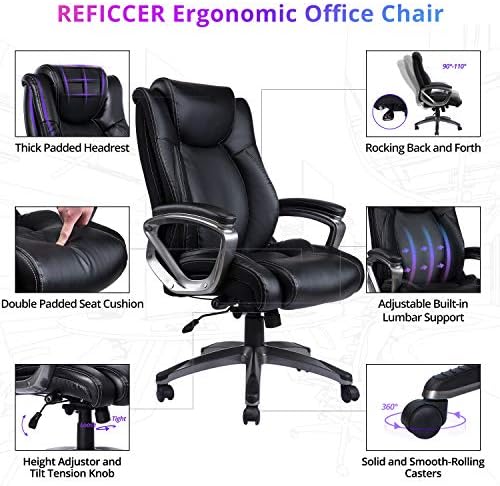REFICCER Bonded Leather Office Chair – Adjustable Built-in Lumbar Support and Tilt Angle High Back Executive Computer Desk Chair for Office Workers & Students