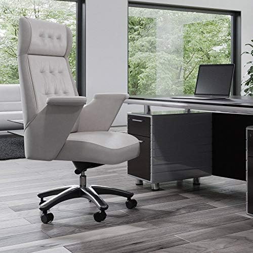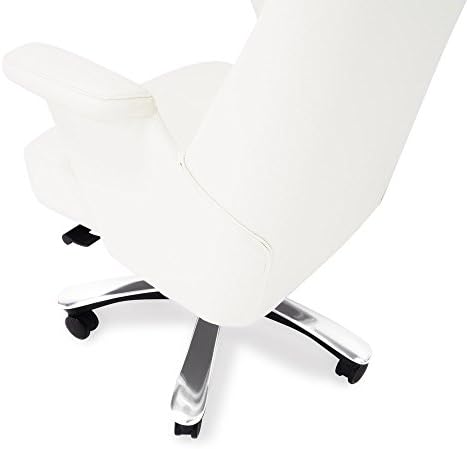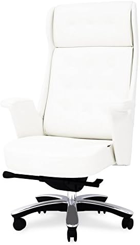 Rockefeller Genuine Leather Aluminum Base High Back Executive Chair – White