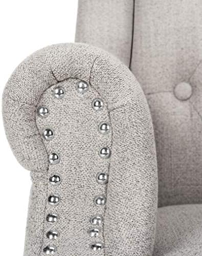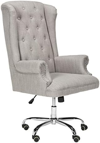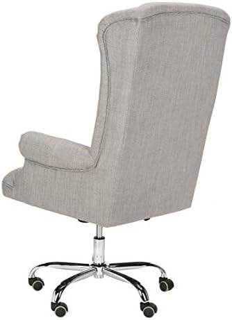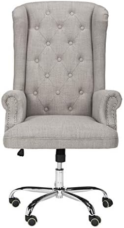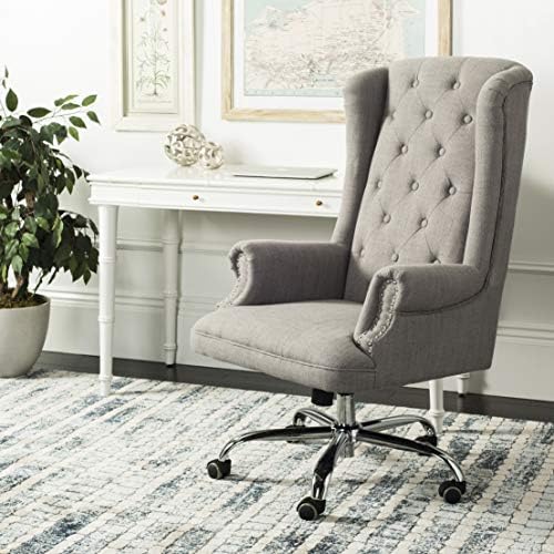 Price: (as of – Details) Designed to recall the office of a top executive in London, this linen chrome leg swivel office chair is a modern update of the classic wingback chair. Its grey tufted linen upholstery is paired with a swivel seat and casters for endless versatility. This desk chair features a grey upholstryThis