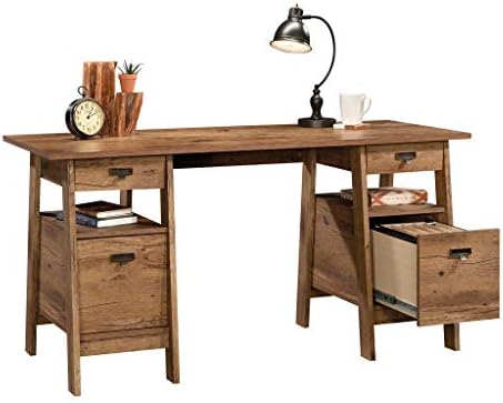 Sauder Trestle Executive Trestle Desk, Vintage Oak finish