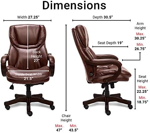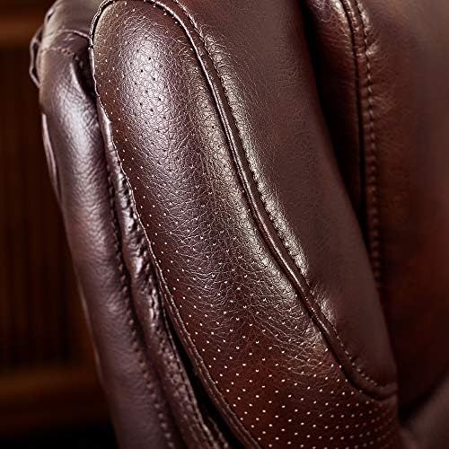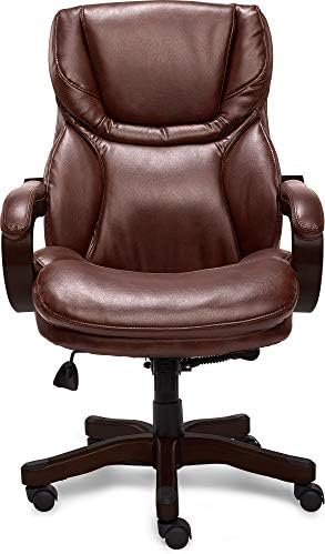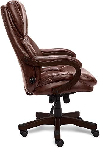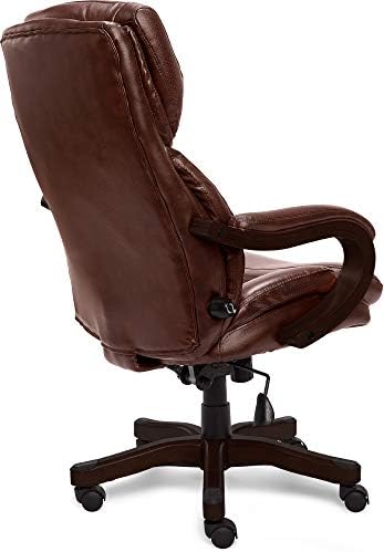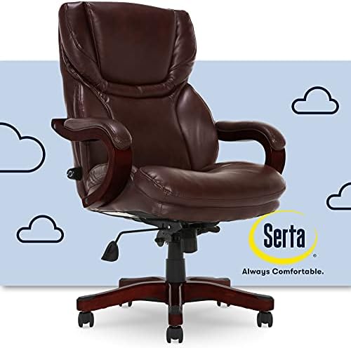 Serta Big and Tall Executive Office Chair with Wood Accents Adjustable High Back Ergonomic Lumbar Support, Bonded Leather, Chestnut Brown