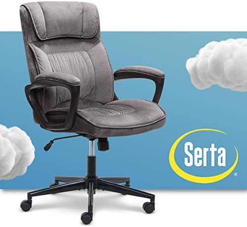 Serta Executive Office Chair Ergonomic Computer Upholstered Layered Body Pillows, Contoured Lumbar Zone, Black Base, Velvet-Gray