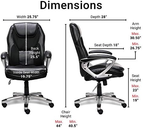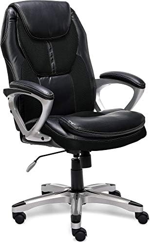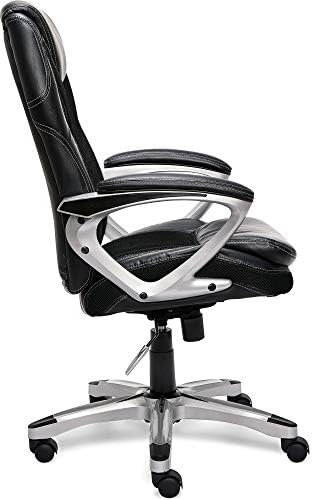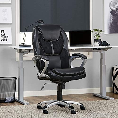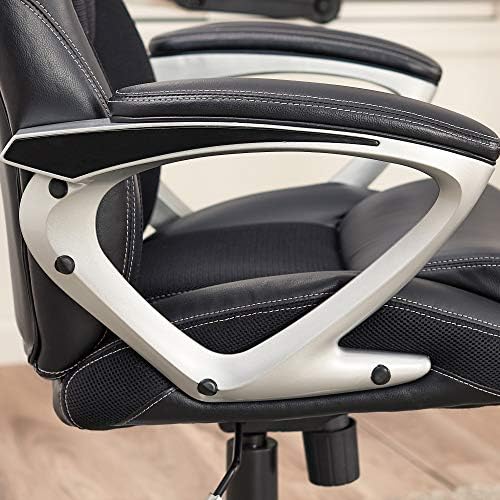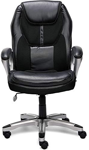 Serta Executive Office Padded Arms Adjustable Ergonomic Gaming Desk Chair with Lumbar Support, Faux Leather and Mesh, Black