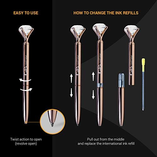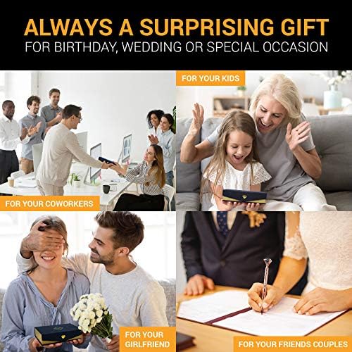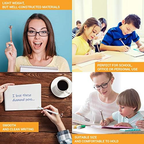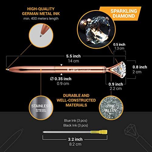 ✅ COMFORTABLE AND EASY TO USE: Even if they are made of durable and well-constructed materials (Stainless Steel and Zinc Alloy for crystal holder), when you write with these fancy pens your notes and documents, you feel only fun and pleasure. The large and shiny Acrylic diamond is not only beautiful, but it’s also light weight, which makes your writing an amazing experience.
