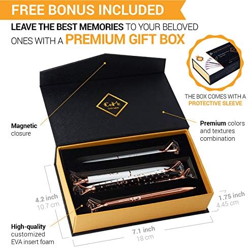 ✅ 100% MONEY BACK GUARANTEE: We are sure that this complete set is a special gift for various events, but if you are still not satisfied, you will receive a full refund. So click on “Add to Cart” button NOW, get this TOP DEAL that includes 6 pcs decorative pens and a customized FREE Premium Gift Box (7.1 x 4.2 x 1.75 inch) having an elegant insert EVA black foam.