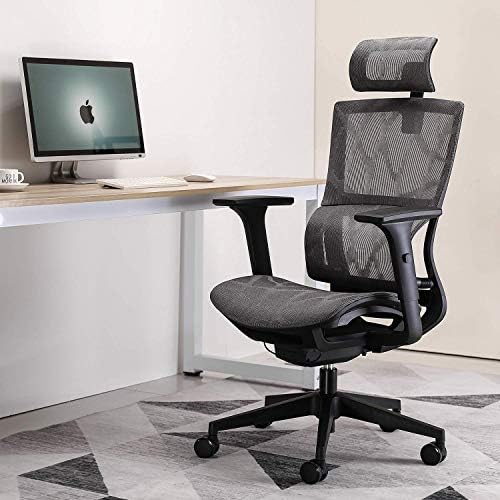 SIHOO Ergonomic Office Chair High Back Mesh Office Chair Computer Desk Chair,Adjustable 3D Armrest,Unique Elastic Lumbar Support (Gery)