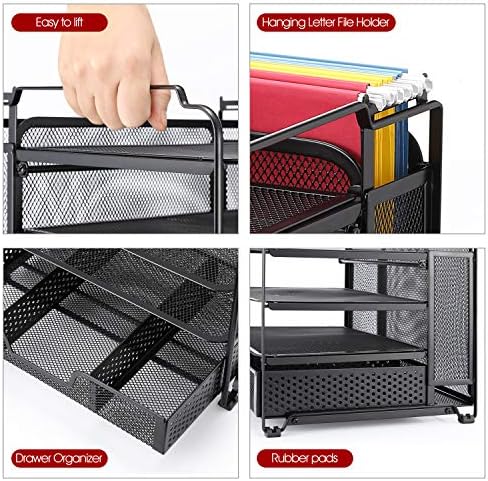 Simple Trending 4-Trays Mesh Office Supplies Desk Organizer, Desktop File Holder with Drawer Organizer and Vertical Upright Section for Office Home, Black