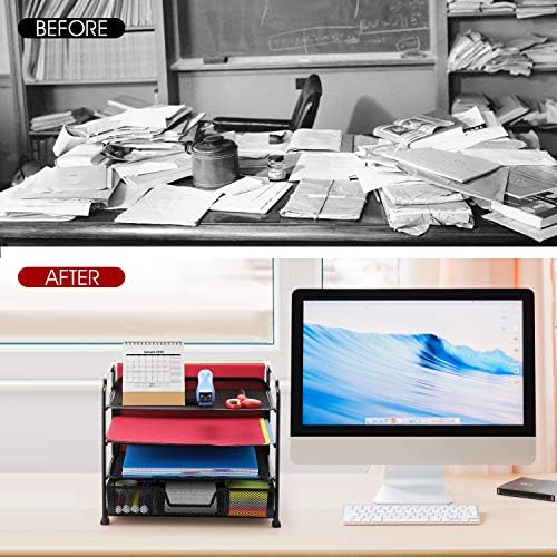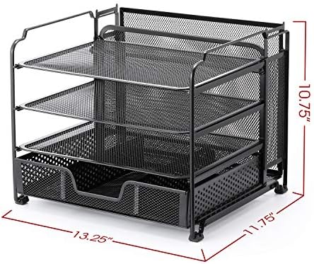 Price: (as of – Details) Simple Trending 4-Trays Mesh Office Supplies Desk Organizer , Black Is your desk messy and unorganized, and it’s hard to focus on the task at hand? The desktop file organizer is perfect for desk storage and holding Letter/A4 size paper, folders, binders, stationary and notebooks to reduce the amount of