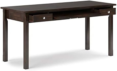 SIMPLIHOME Avalon SOLID WOOD Contemporary Modern 60 inch Wide Home Office Desk, Writing Table, Workstation, Study Table Furniture in Tobacco Brown with 2 Drawerss
