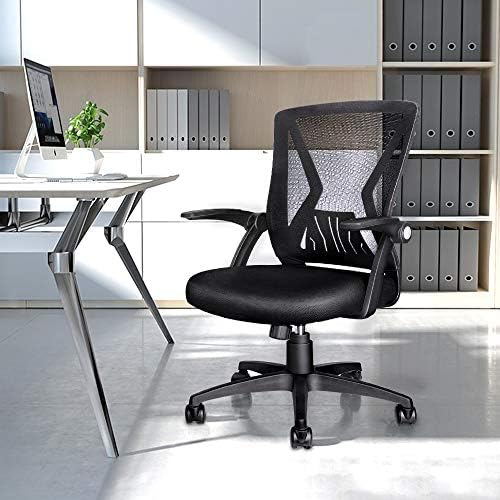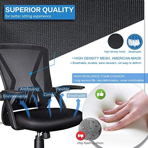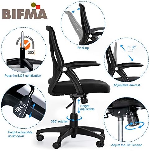 SINOVO Mid Back Mesh Office Chair Swivel Ergonomic Black Mesh Computer Chair Flip Up Arms With Lumbar Support Adjustable Height Task Chair