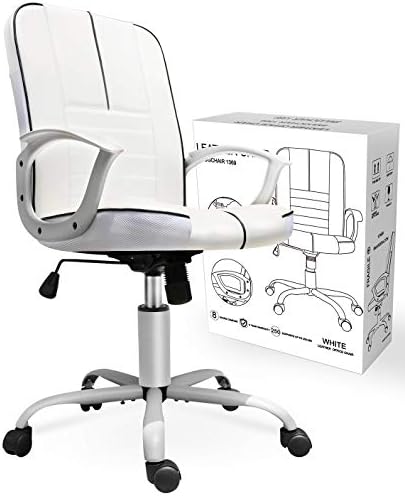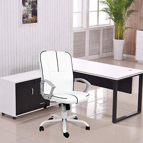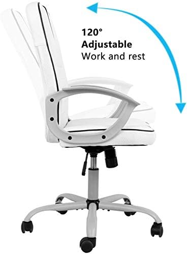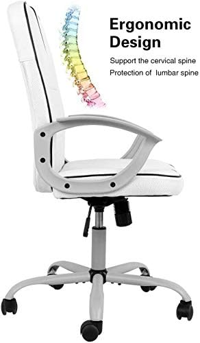 Price: (as of – Details) Ergonomic Office Chair, Mid Back Bonded Leather Office Computer Swivel Desk Task Chair with Armrests, WhiteAdjustments – Simple pneumatic controls let you raise or lower your seat and rock back in your chair. Pulling out on the control handle, allows your chair to recline back, or sit forward and push