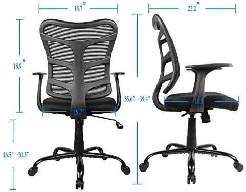 Price: (as of – Details) OFFICE CHAIR Color: Black Overall Dimensions: 25.19*22.24*35.63/39.37 inches Weight capacity: 250 lbs Ergonmic Design The open mesh design creates a breathable, well-ventilated backrest. The ergonmic design will help you keep in the right position during prolonged working Breathable Padded Seat The padded mesh seat is thick and resilient. Made of high