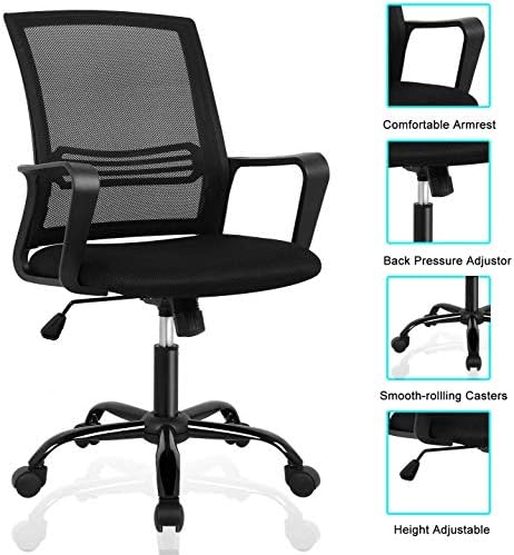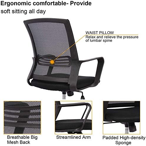 【COMFORTABLE FEATURES】 Breathable Ventilated mesh of this computer chair make you feel more better during working time. Along with 360° swivel allows you to customize your position. The durable nylon base is heavy duty design to ensure safe for whole-day use.
