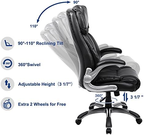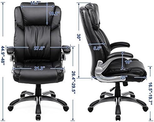 MULTIPLE ADJUSTMENTS: Flip-Up armrests can be fully folded upwards for convenient uses and are saving space to put under the desk; ergonomic chair seat back reclines to 90-110 degree position and rocks to your weight; adjustable height of the seat is 16 1/2”- 19 5/8” making it perfect for most of people
