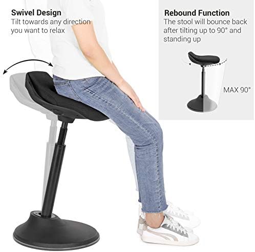 Price: (as of – Details) Product Description Comfort isn’t limited to sitting on the couch in your living room. With this SONGMICS work stool, comfort will now also be in the workplace! Check out Highlights of This Standing Stool: It allows swivel and tilts up to 8°.The large seat at 15″ x 16.1″ is padded