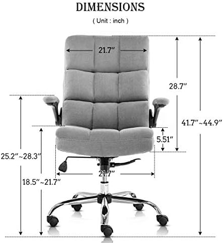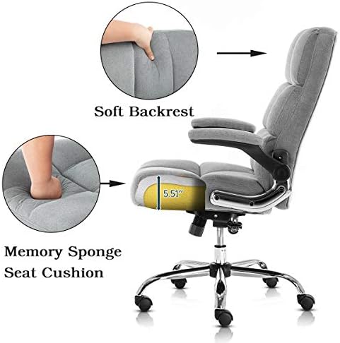 SP Velvet Office Chair Adjustable Tilt Angle and Flip-up Arms Executive Computer Desk Chair, Thick Padding for Comfort and Ergonomic Design for Lumbar Support (3288GY)