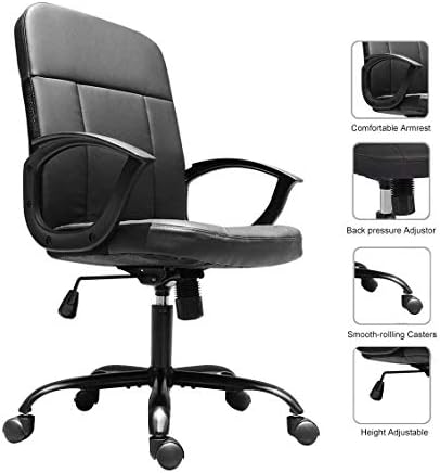 👍GET A STURDY COMPUTER CHAIR WITH GUARANTEED LONGEVITY: QQuality made from bonded leather, it is a stylish, elegant and classy mid-back executive chair. The nylon base, the durable & smooth-rolling casters make the profile of a long-lasting office accessory made for a lifetime of reliable use. With a weight capacity of full 300 pounds, you can rest assured your office chair is made to last.